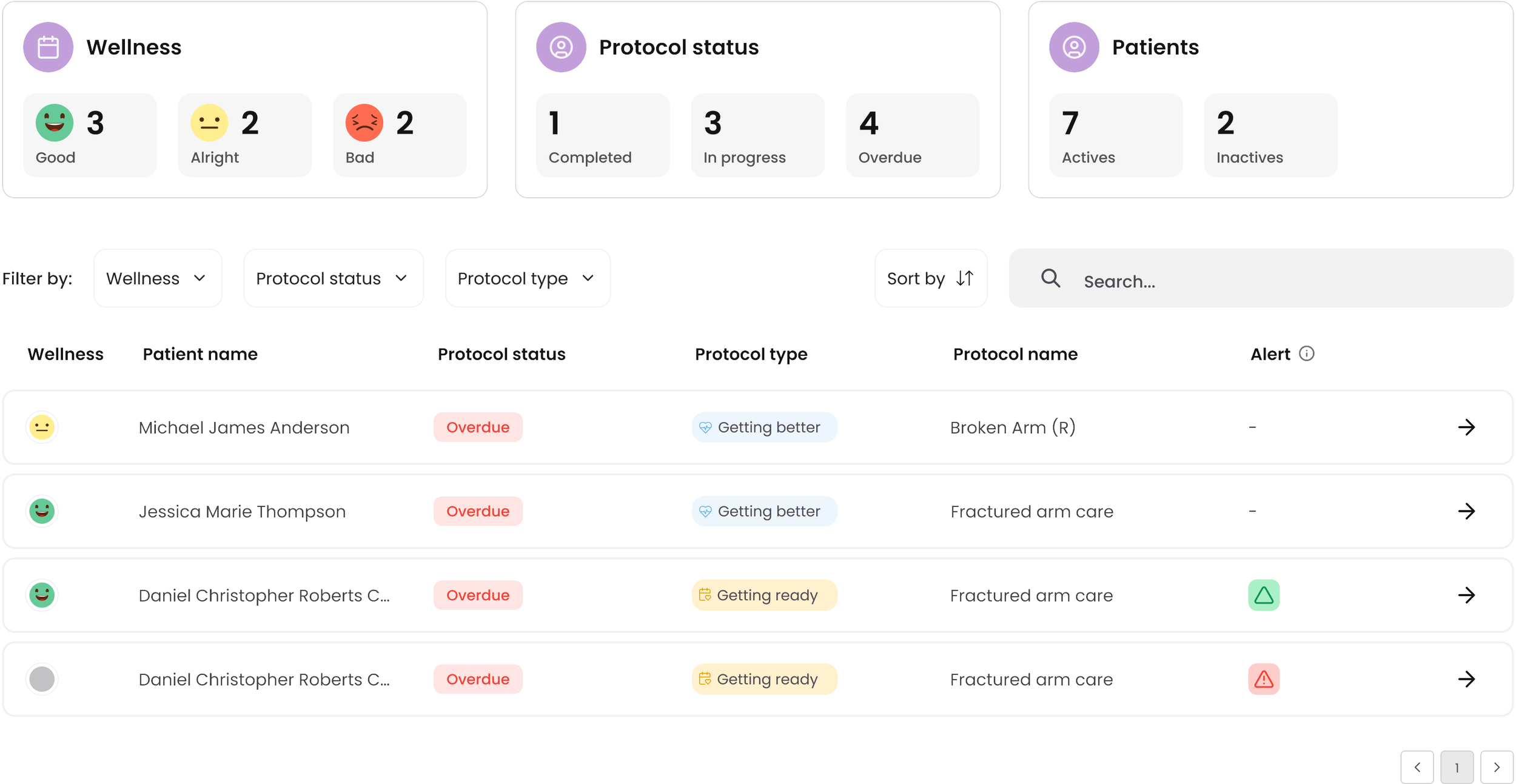 If the patient is compliant, they show a green indicator on the dashboard. Non-compliant patients show with a red indicator.
